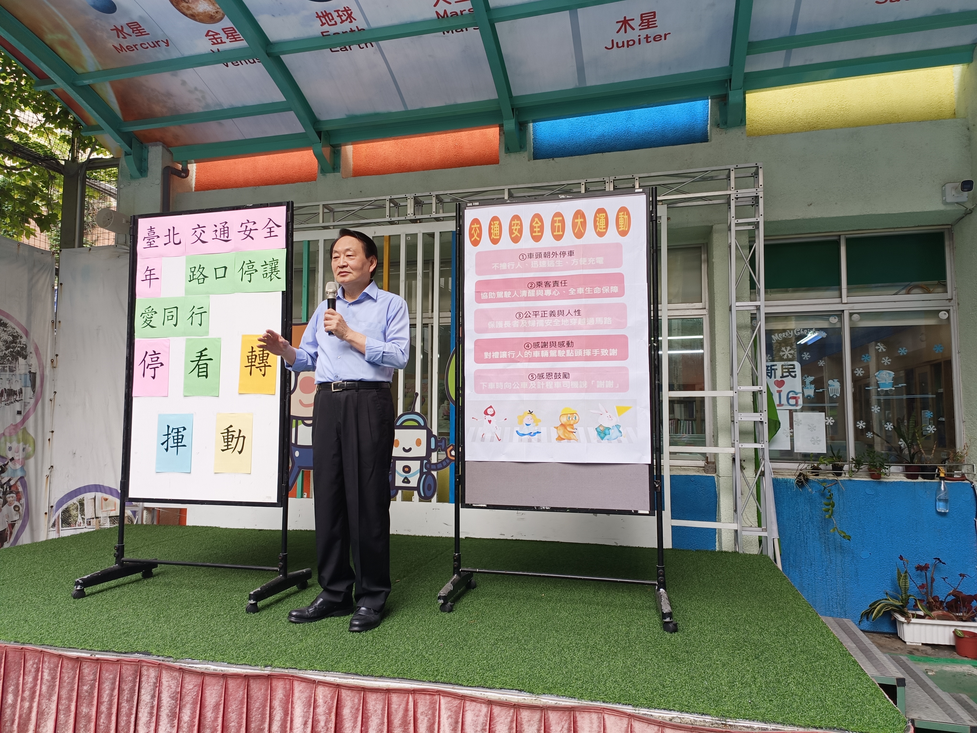 主題:113年交通安全年,響應交通安全月--車輛慢看停, 行人安全行。